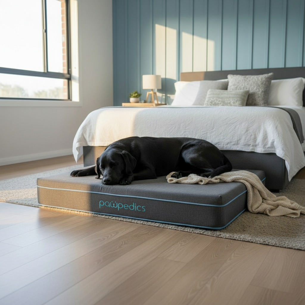 The Original Pawpedics Cover material was selected because of its high tensile strength and tear resistance. The material is stain and pet-hair-resistant, meaning the hair will sit on top of the fabric instead of being embedded between fibres like most pet beds.
